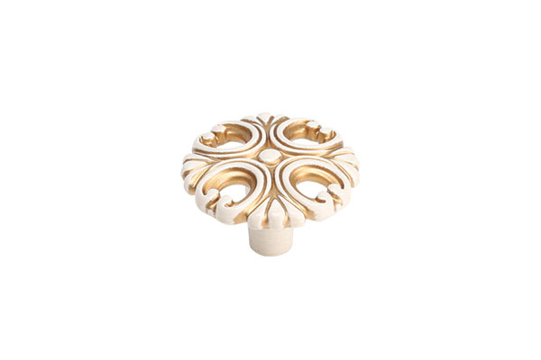 Ручка кнопка WPO.821Y.000.M00V7, материал Замак, отделка Золотая патина Золото Слоновая кость, 24*d=37 мм